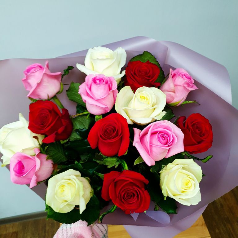Букет из 15 роз Россия "Микс", оформление