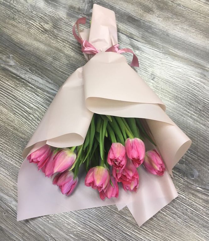 Букет будет из 11 розовых тюльпанов Россия с оформлением