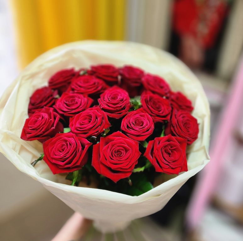 Букет из 15 красных роз Россия, с оформлением