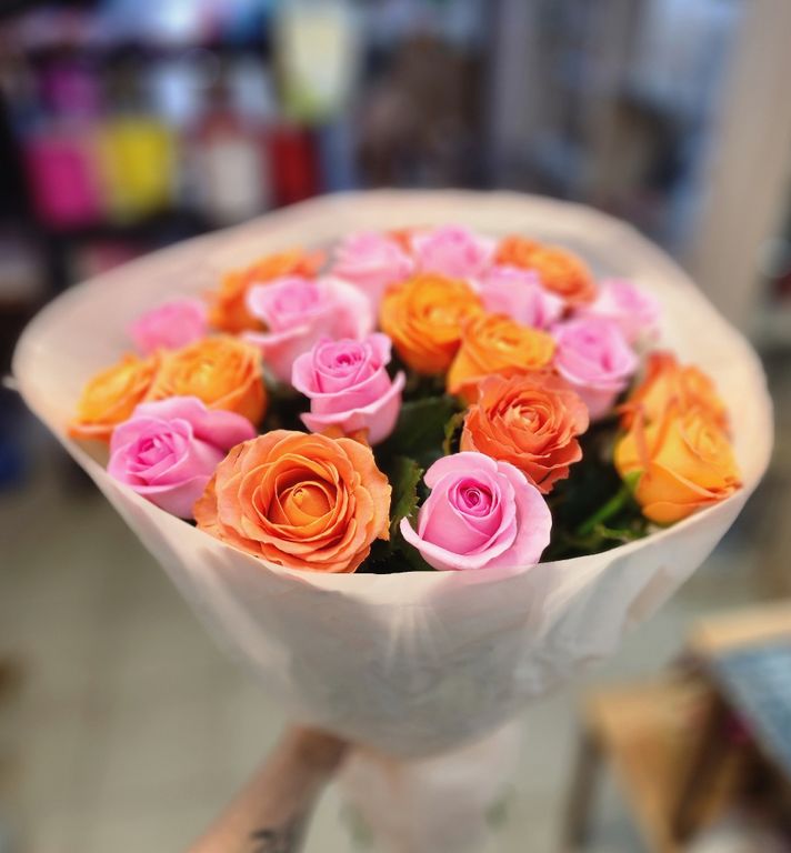 Букет из 21 розы Россия " Микс" , с оформлением
