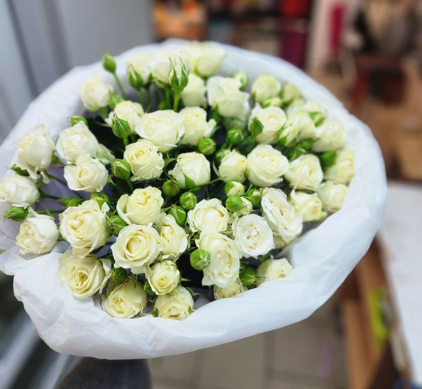 Букет из 9 кустовых белых роз Россия , с оформлением